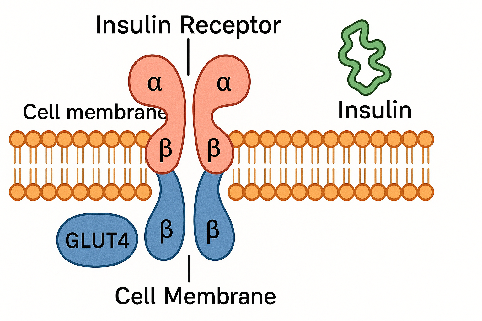 - 인슐린 수용체의 구조적/기능적 이상 또는 신호전달 효율 저하는 인슐린 저항성과 혈당 조절 실패로 이어져 당뇨병의 주요 병인이 됩니다.