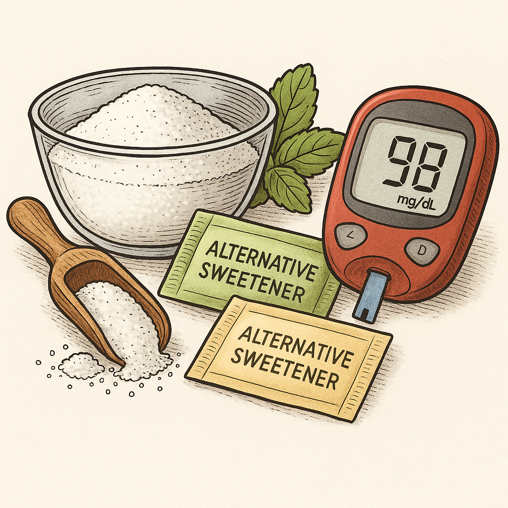 대체당(대체 감미료)은 당뇨 환자에게 설탕 등 단순당에 비해 혈당을 덜 올리고, 칼로리가 낮거나 거의 없어 혈당 조절에 도움이 될 수 있습니다. 스테비아, 에리스리톨, 아스파탐, 수크랄로스, 올리고당 등 다양한 종류가 시중에 판매되고 있으며, 제조 과정을 통해 대부분 체내 흡수율이 낮아 직접적으로 혈당을 급격히 올리지 않는 것이 특징입니다.